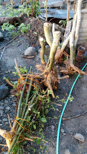 Once I finalized my decision, I covered the roots with river sand and watered the entire pot with water mixed with some rooting hormone.