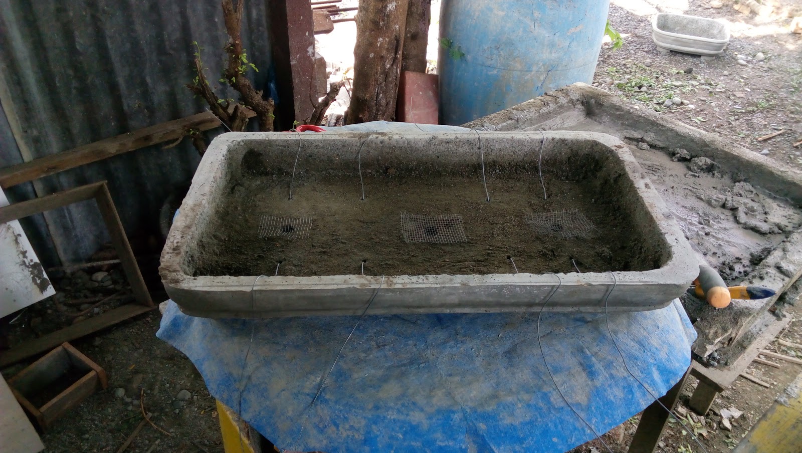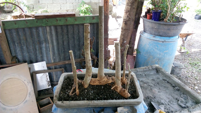 After cutting down the these trees to my desired height, I prepared the training pot which is made by my father. It is a rectangular concrete pot which I thought is perfect for this composition.