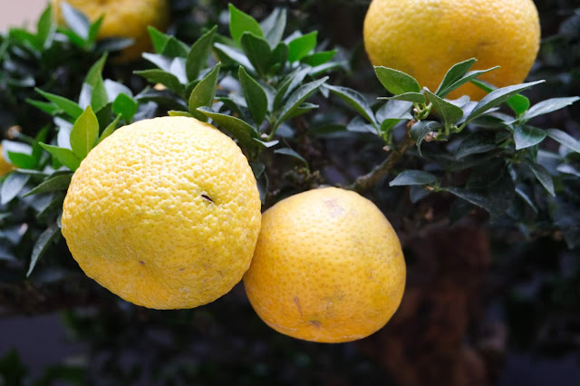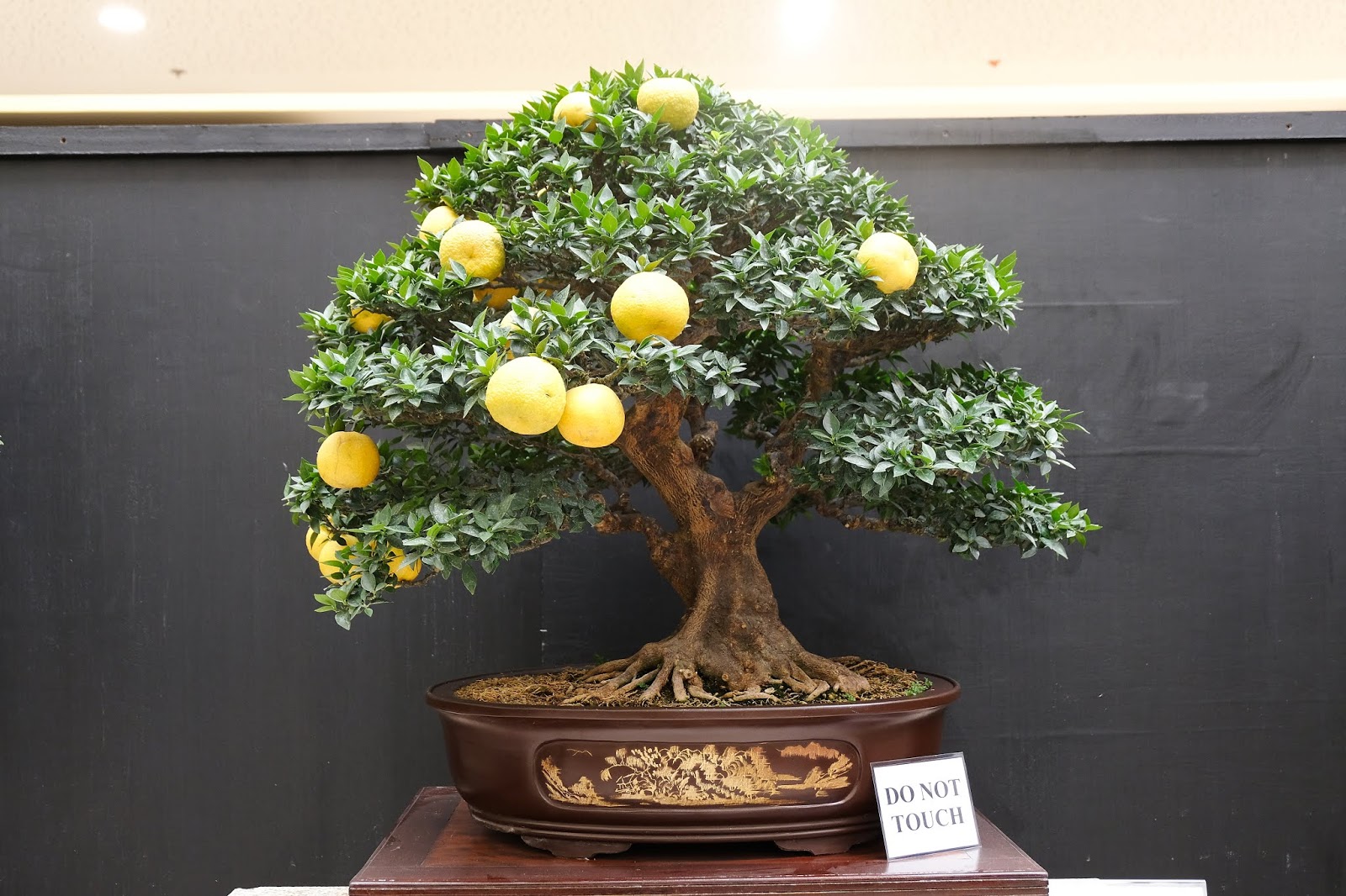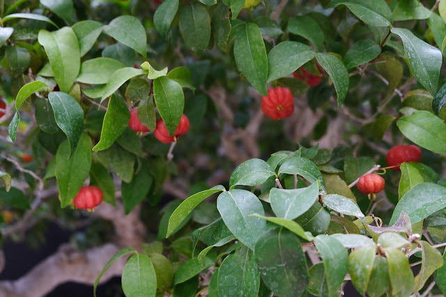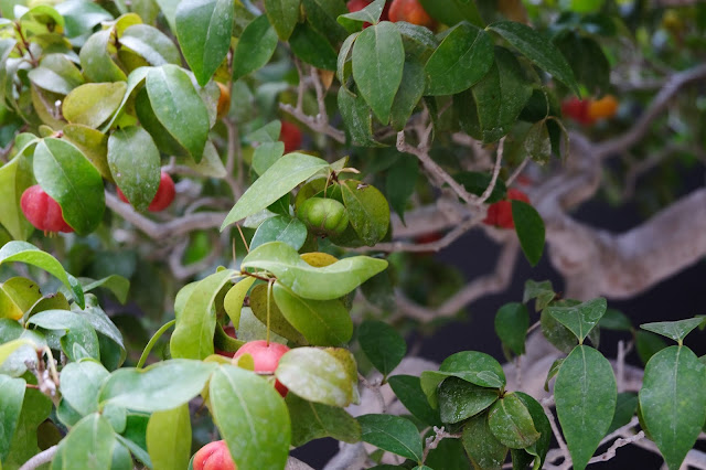 My wife Rosey is having fun with the fruting bonsai behind her.